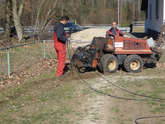 Die Arbeiten der Firma Benz wurden in der letzten Februar- und der ersten Märzwoche 2019 an insgesamt 6 Werktagen ausgeführt. Die kurze Ausführungszeit ergab sich, da die Leitungen für Wasser und Steuerstrom auf den Rasenplätzen mittels eines speziellen Verfahrens in einem Arbeitsschritt ohne aufwändiges Ausheben und Verfüllen von Gräben verlegt wurden. Außerhalb der Rasenplätze wurden die Leitungen in schmalen, gefrästen Gräben verlegt.