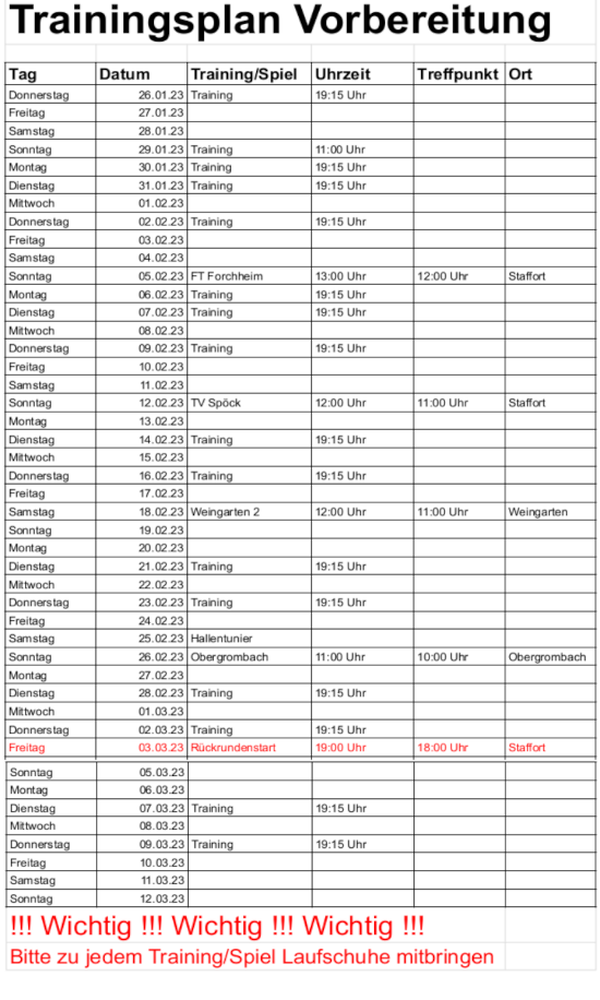 Trainingsplan Vorbereitung