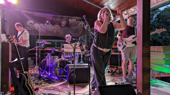 Nach dem AH-Spiel und dem Spiel der SVS-Legenden gegen die SVS A(H)LL-Stars rockte Seven Sharp Nine von der SVS-Bühne. Während des kurzen Regenschauers, war bei hervorragender Stimmung, zusammenrücken im Trockenen angesagt.