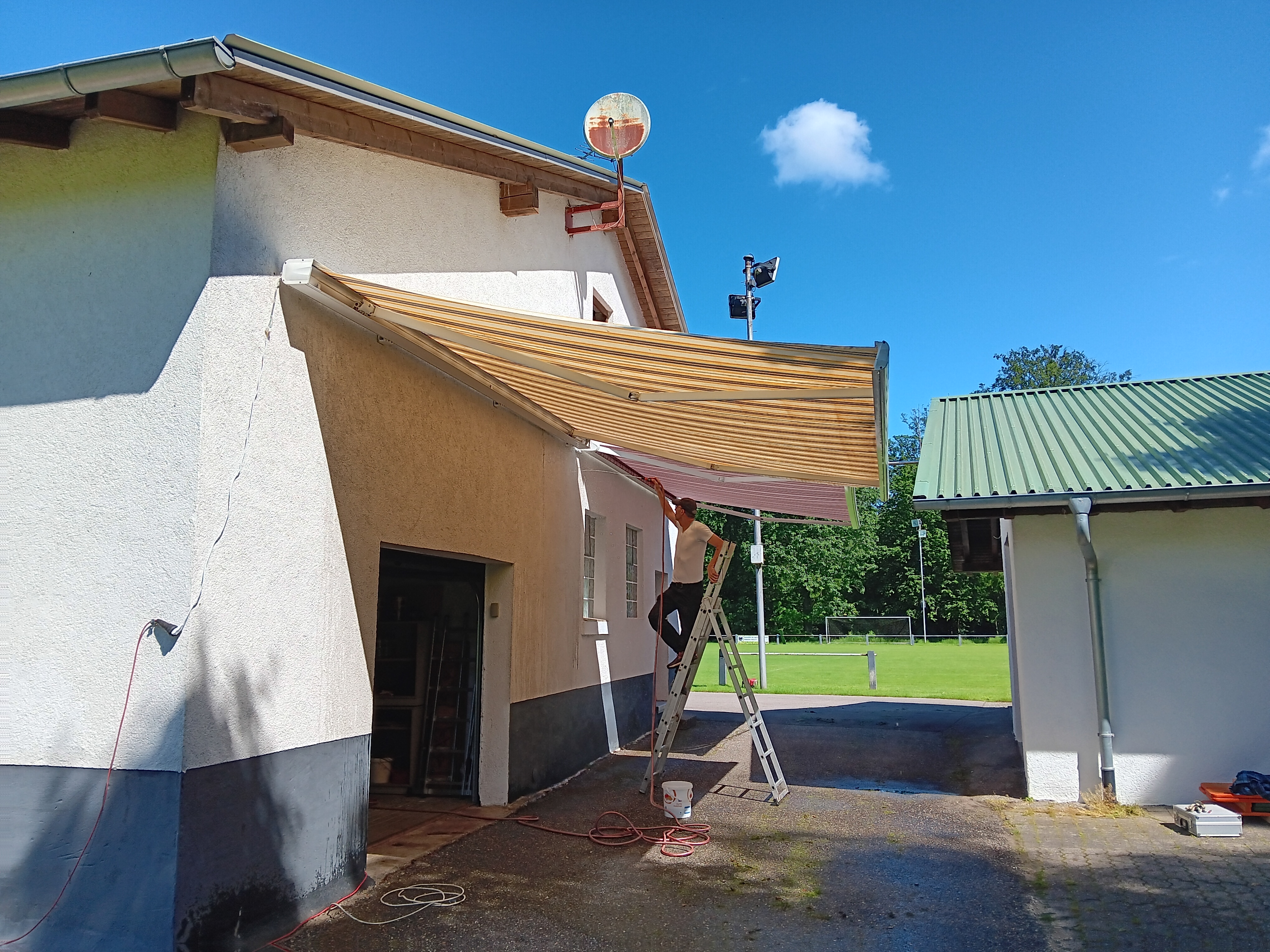 Am 25. Mai fand ein erneuter Arbeitseinsatz am Sportgelände des SV Staffort statt. Olaf Hecht und Stephan Küpper spendeten jeweils eine Markise und diese wurden an der Ostseite des Hauptgebäudes montiert. Dank dieser Markisen können nun bei Veranstaltungen weitere Sitzplätze je nach Bedarf beschattet werden.