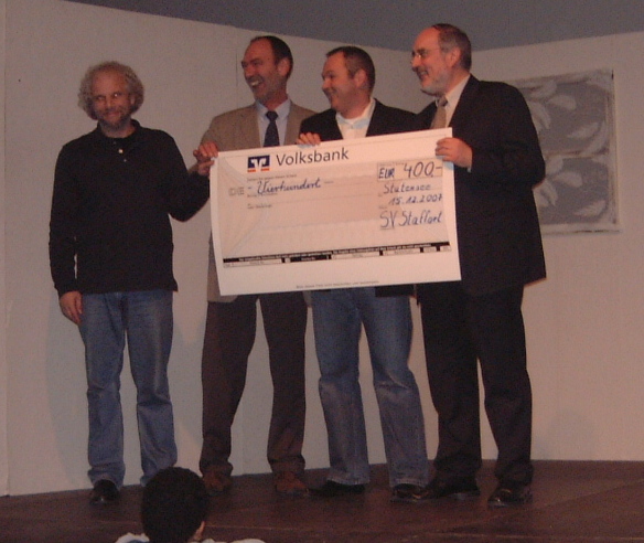 OB Klaus Demal und OV LW Heidt nahmen im Rahmen unserer Winterfeier einen Scheck des SVS zugunsten der Aktion Mensch im Rahmen des "Festivals der guten Taten" entgegen. Diese Spendenaktion der Stadt Stutensee wurde im Rahmen des sommerlichen Sportfestes des Vereins durchgeführt und erbrachte den Betrag von 400 Euro.