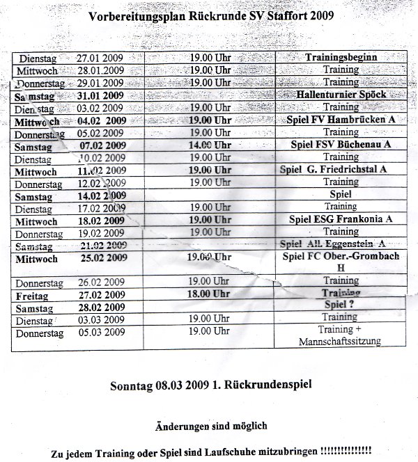 Vorbereitungsplan Rückrunde SV Staffort 2009