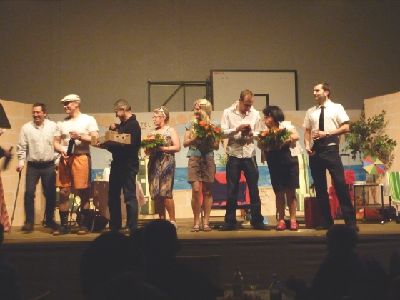 Nach einem weiteren Liedbeitrag fand die mit reichlich tollen Preisen gespickte Verlosung der Eingangslose großen Zuspruch. Herzlichen Dank an alle Sponsoren wobei ein besonderer Dank an das Ehrenmitglied Hugo Schilling geht, der den Hauptpreis -ein Fahrrad mit Vollausstattung- stiftete. Zweifelsohne war das Theaterstück der Höhepunkt der Winterfeier. Mit dem Stück „Spanien ole“ erfreuten die Mitwirkenden Yannick Badde, Klaus Balog, Ernst und Patrizia Heidt , Markus Henneberger, Suzan Naujocks und Inge Rößler das Publikum und erhielten mehrfach Szenenapplaus. Ein großer Dank geht an „Trainer, Motivator und Souffler Klaus Spohrer der sich auch verantwortlich zeigte für das toll gestaltete Bühnenbild.