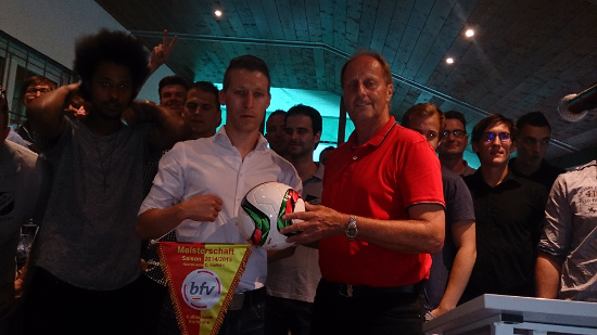 Eine gelungene Meisterfeier mit einem kurzweiligen Programm bildete den Abschluss der Saison 2014/2015. Nach den Begrüßungsworten von Stephan Küpper, der erfrischenden Rede von Ortsvorsteher Ludwig-Wilhelm Heidt, dem Beitrag der Nachbarvereine und dem „Etwas Anderen Saisonrückblick“ von Jürgen Holderer nahm Spielführer D. Wittemann den Meisterwimpel von Günter Hörner (Mitglied des Verbandsvorstandes des bfv und Staffelleiter) entgegen.